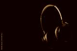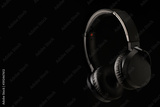 black headphones on black background with side lighting