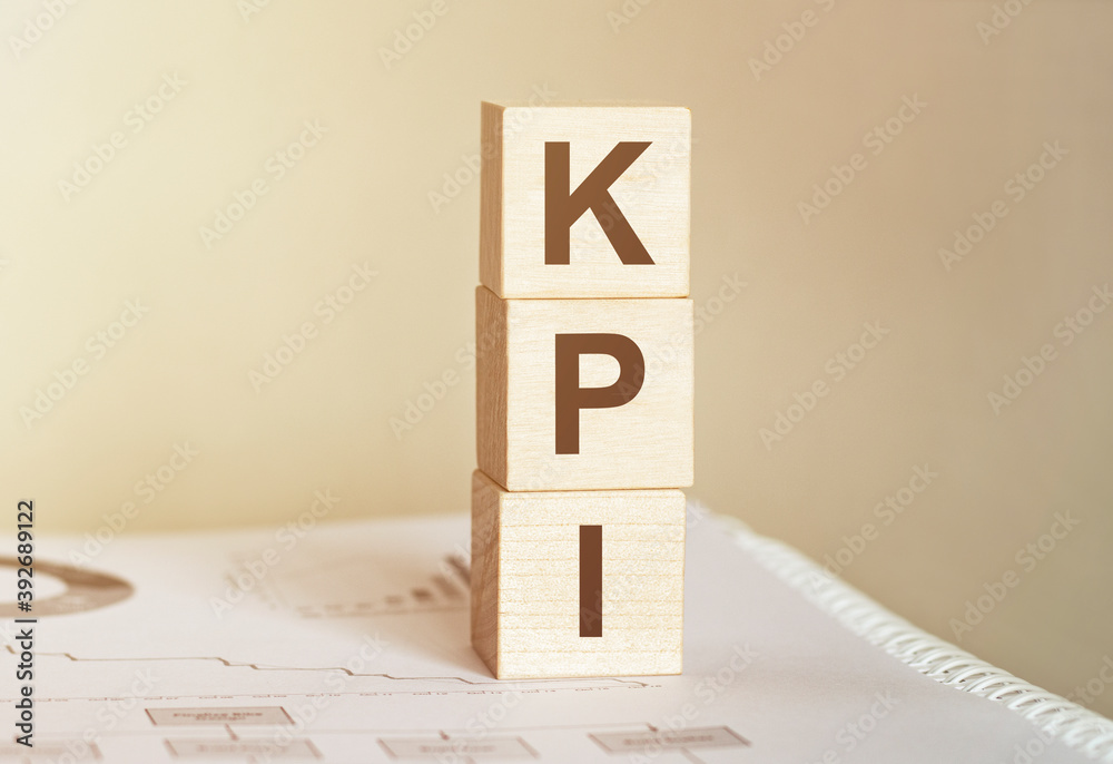 Word KPI made with wood building blocks