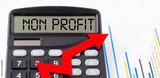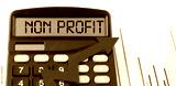 Calculator with red ascending arrow and text NON PROFIT on the display