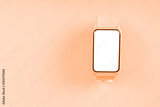 Mockup Fitness watch on pastel background. Close-up. Front view of pink smartwatch with blank white touch screen display. front view