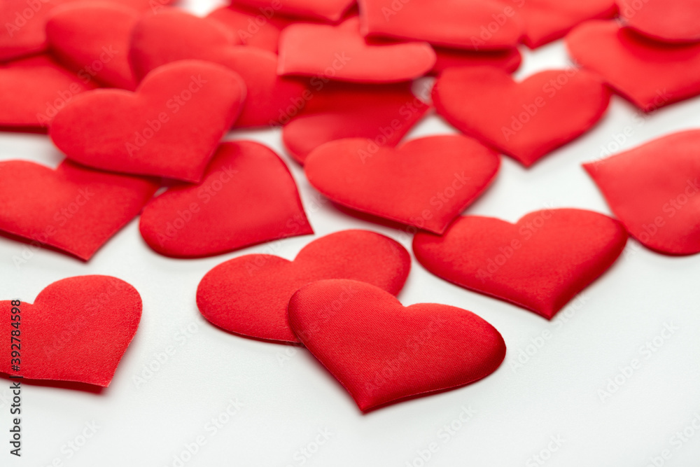 Romantic greeting card. A set of decorative elements in the form of satin hearts.