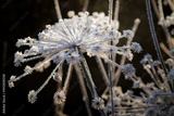 Heracleum maximum flower also know as cow parnsnip or indian celery covered by frost during a cold winter morning