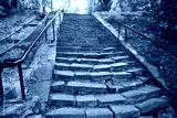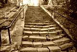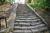The famous stone stairs to the Southern Bug in old park in Vinnytsia, Ukraine. September 2020