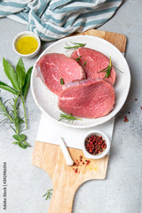 Raw beef steak. Sirloin medallions steaks on white plate