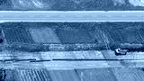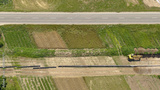 TOP DOWN: Flying above a pipeline construction site running along a country road