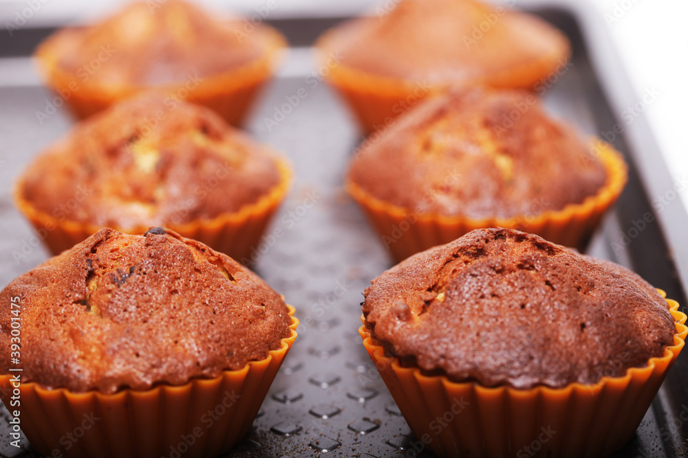 Food concept - fresh tasty pastries, cupcakes close up picture