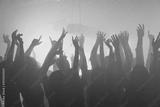 Photo of meeting crazy dance carefree party enjoy raise hands wear trendy outfit modern club indoors