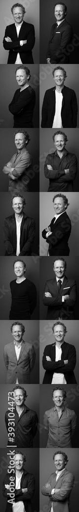 Collage from a man in front of a colored background