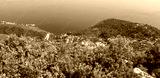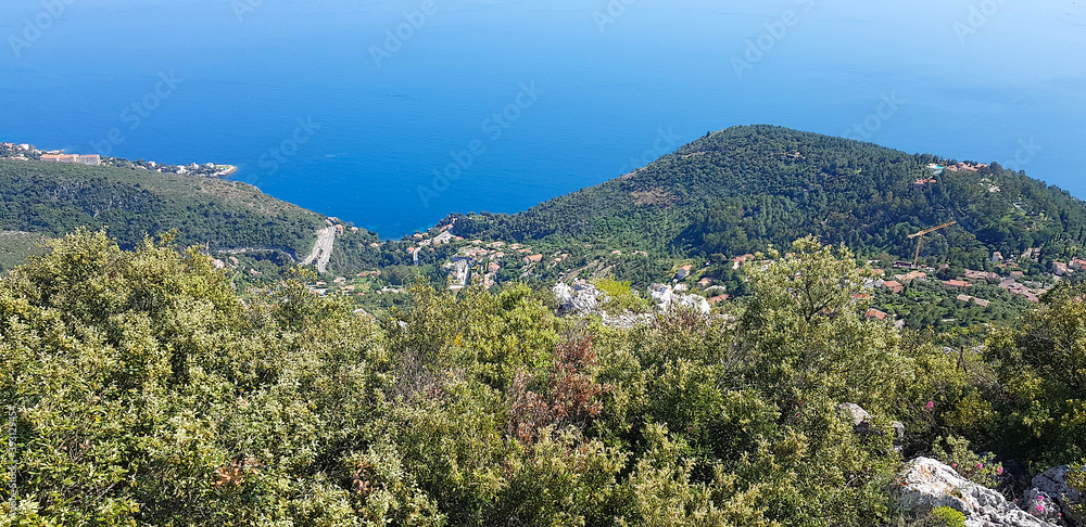 View of Eze village and the French Riviera from the Grande Corniche mountain, South of France