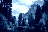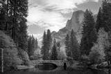 A vibrant fall scene of Half Dome in Yosemite National Park. Autumn colors and Half Dome from Stoneman Bridge.