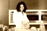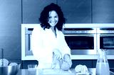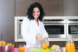 Happy woman having breakfast in a kitchen