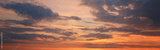 Beautiful bright colorful pink red yellow clouds on dark sky at sunset, sunrise. Evening or morning dramatic sky background. Amazing nature texture surface wallpaper. Web banner header.