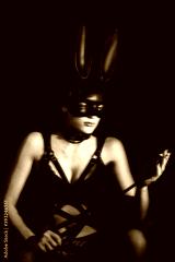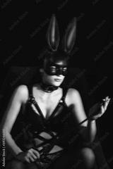 Nude sexy mistress girl masked Bunny in leather belt