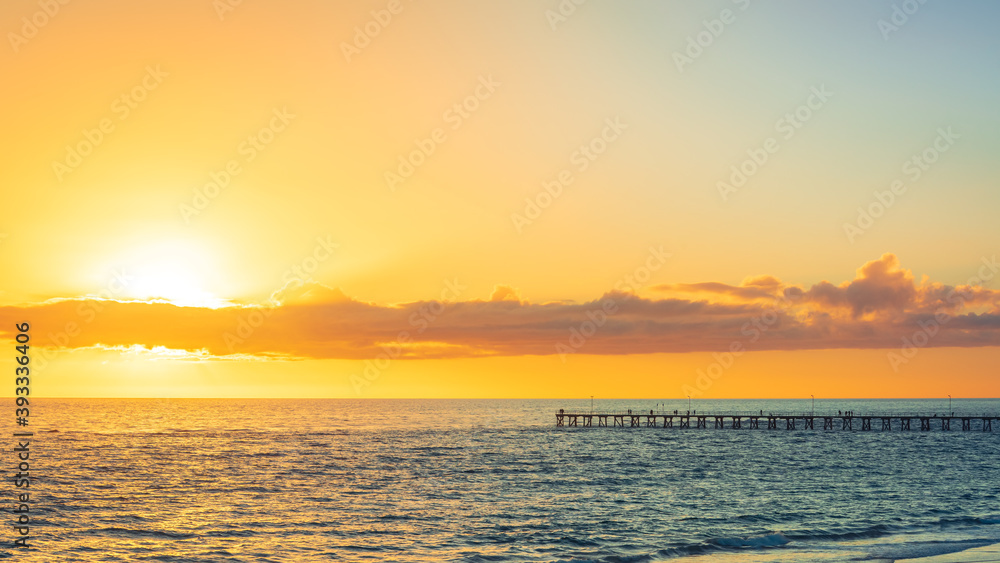 Port Noarlunga beach with Jetty at sunset, South Australia