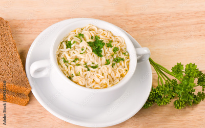 Noodles and parsley soup
