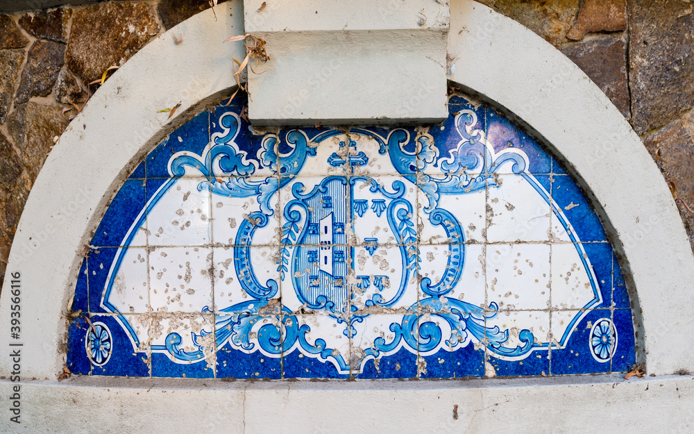 Traditional decoration of the facade of the house in Porto. Typical Portuguese and Spanish tiles azulejos