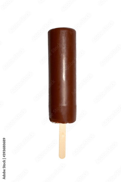 Popsicle cream in chocolate glaze on a stick.Chocolate Popsicle on a white background.