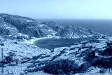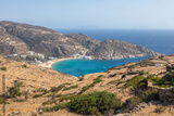 Coastline and Mylopotas Beach, Ios Island, Greece.