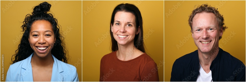 Portraits of beautiful people in front of a colored background