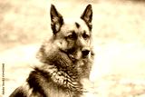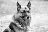 Portrait of a young german shepherd on a trail in the green
