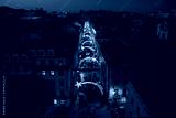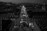 High angle view from above to Rua Augusta street in Lisbon at night illuminated with falling stars during Christmas time