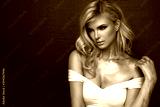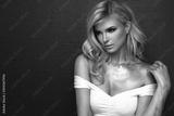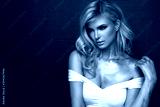 Fashion picture of beautiful young blonde woman wearing glitter silver makeup. Long healthy curly hair.