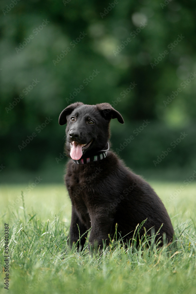 Beautiful German Shepherd puppies running in a green field