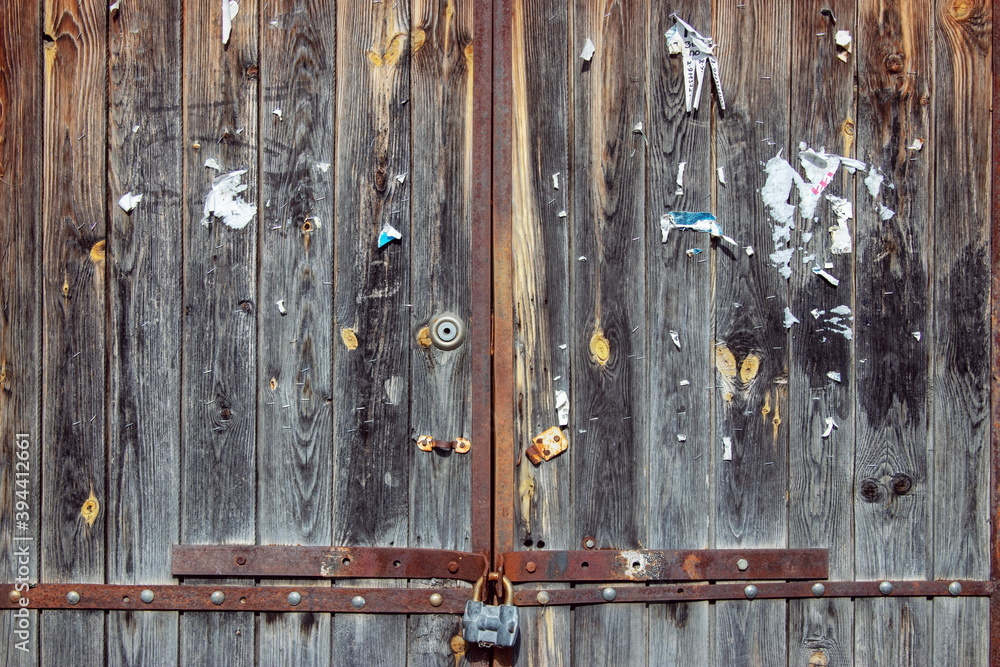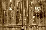 Fragment of a gate of the early twentieth century consisting almost entirely of wood, closed under a hangar lock