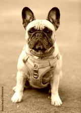 5-Years-Old Female Fawn Frenchie Sitting and Looking at Camera.
