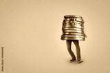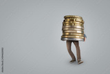 Person bringing a large oversized coin stack