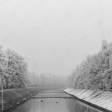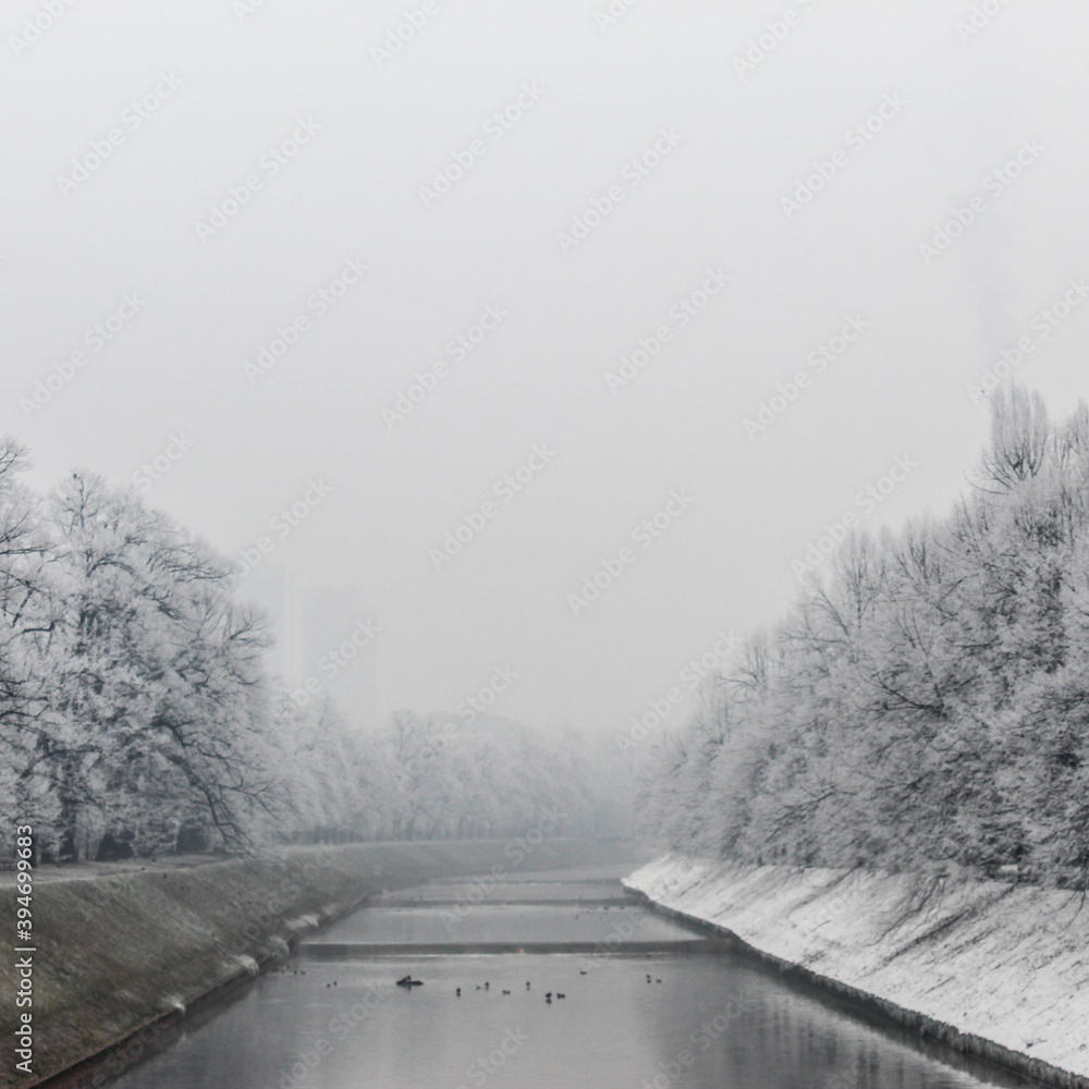 Winter in Sarajevo. The Miljacka river in Sarajevo during the winter. In winter, Sarajevo has fog and pollution with little snow on the coast.