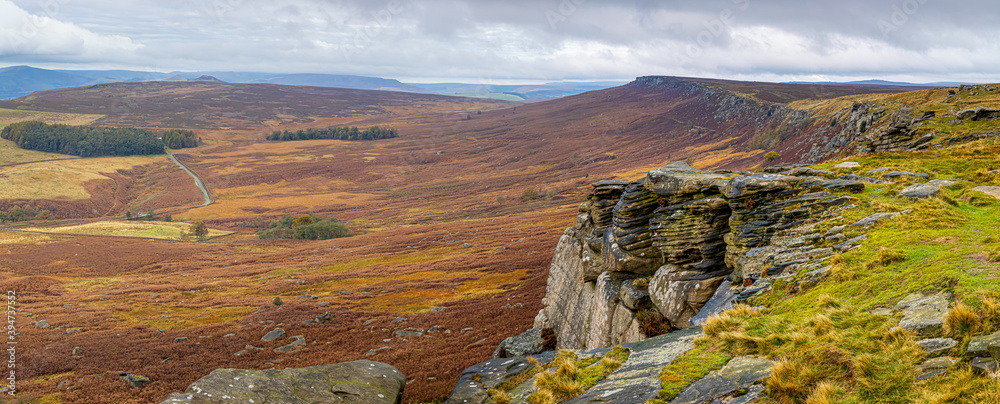 View of Stanage Edge in Peak district, an upland area in England at the southern end of the Pennines