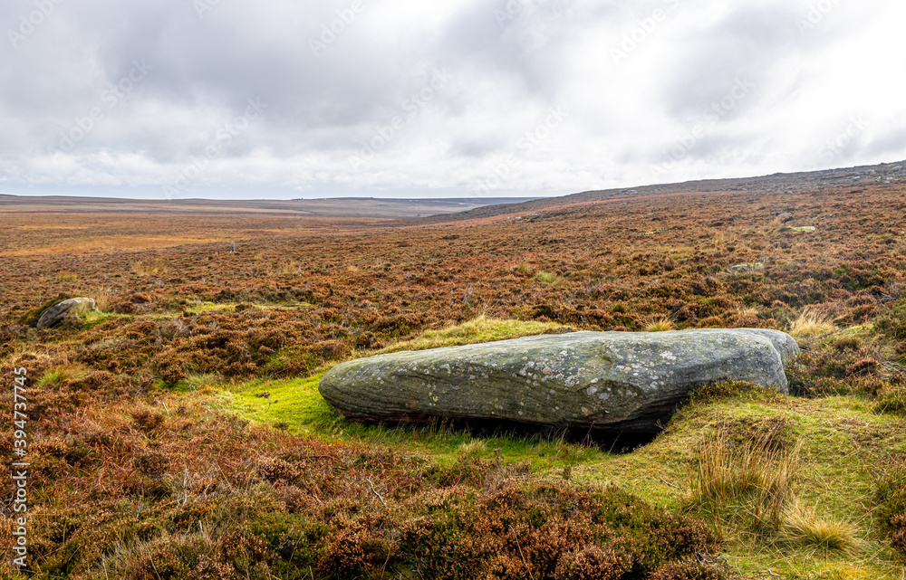 View of Stanage Edge in Peak district, an upland area in England at the southern end of the Pennines