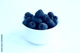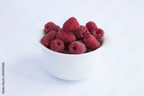 Closeup on raspberry in the white bowl on the white background