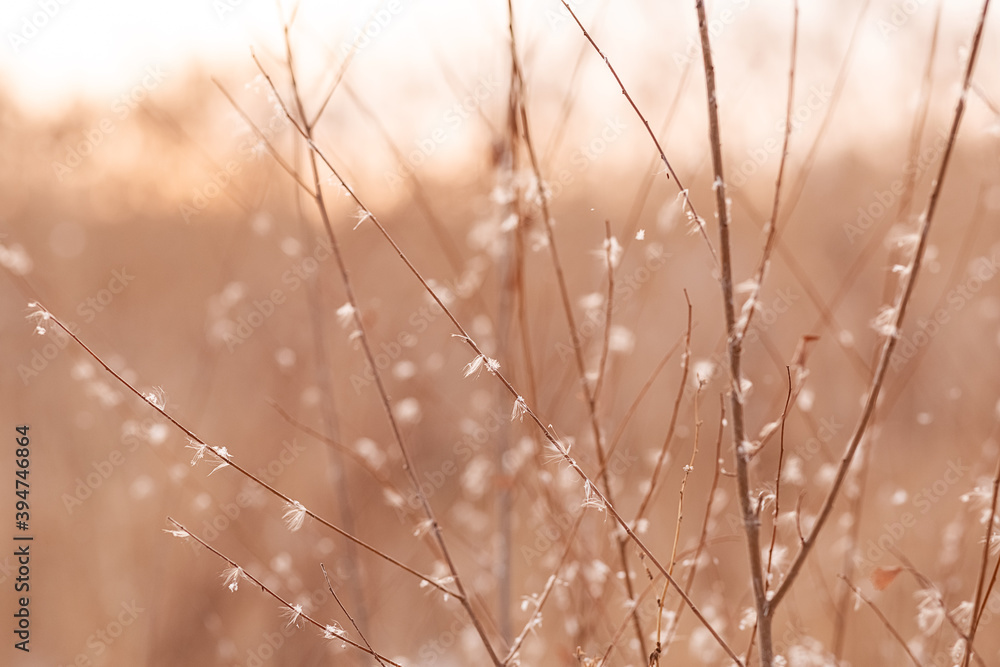 thin branches of a shrub, swaying in the wind against the sky, abstract natural background, made in light pastel colors.