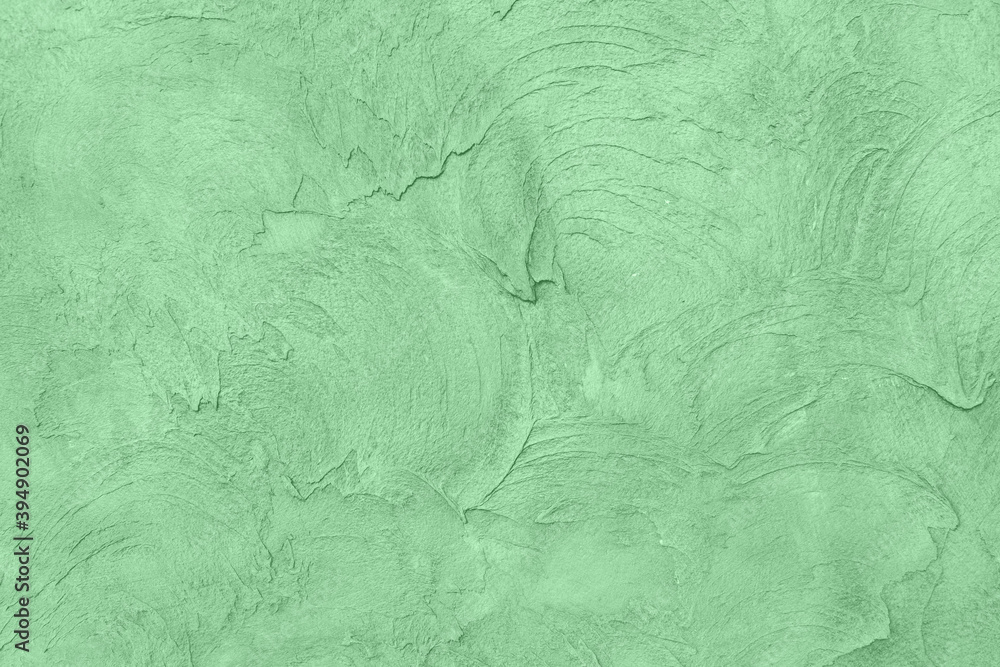 Trendy mint colored low contrast Concrete textured background with roughness and irregularities to your design or product. 2021 color trend concept. Urban modern design. Home decor.