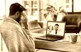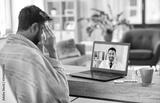 medicine, healthcare and technology concept - sick young man having video call or online medical consultation with doctor on laptop computer at home