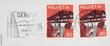 vintage retro alt old briefmarke stamp gestempelt frankiert cancel used helvetia schweiz swiss häuser haus slogan werbung genf geneve centre de tourism tourismus zentrum rot red 30 berghütte