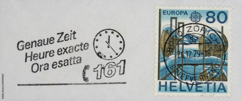 briefmarke stamp vintage retro alt old frankiert cancel gestempelt helvetia schweiz swiss slogan werbung genaue zeit uhrzeit heure exacte ora esatta 80 schnee mühle zürich industrie