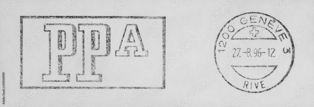 briefmarke stamp vintage retro alt old frankiert cancel gestempelt helvetia schweiz slogan werbung ppa 1996 stempel