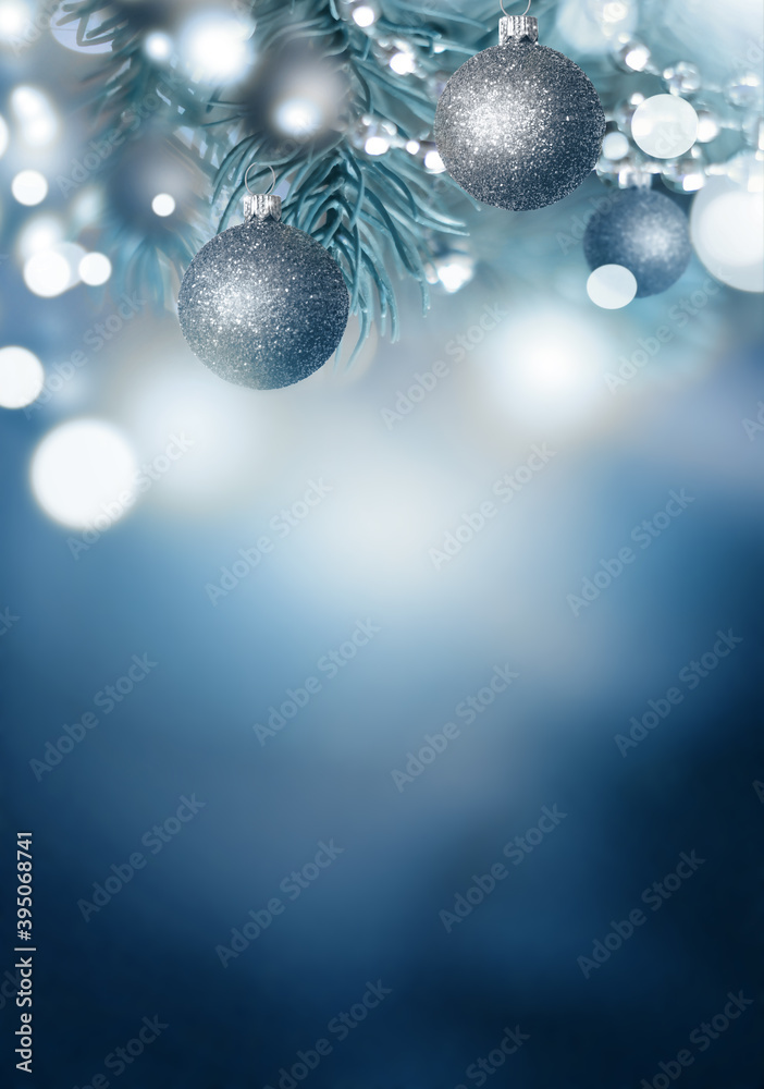 Fir Blue Pine Branch and Christmas ball - Christmas Holidays Background.