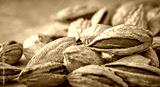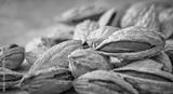 Almond kernels lie on a dark background.Selective focus.Salted almonds.