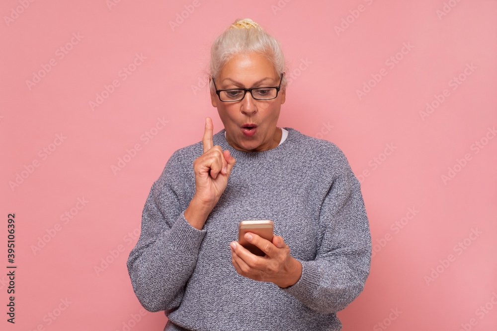 Portrait of serious senior woman using smartphone, reading or typing important message