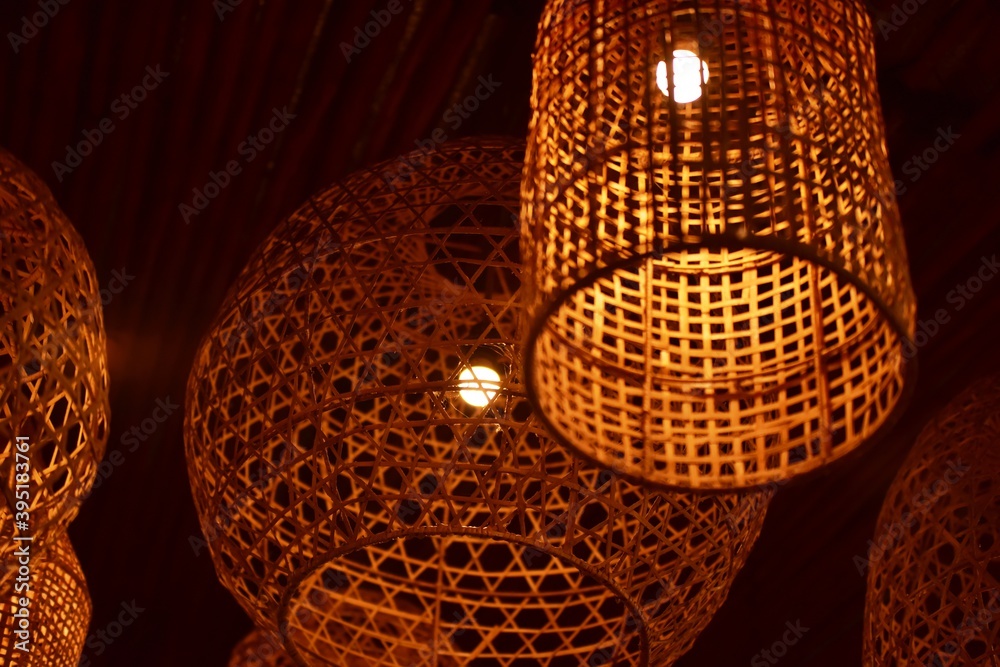Bamboo lamp used to decorate the house.