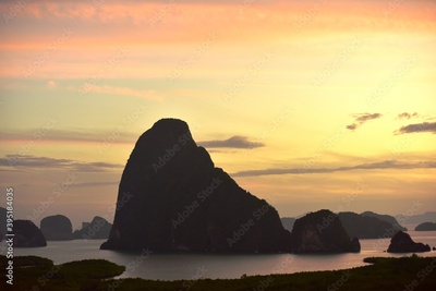 Sea view There are many islands in the early morning, the sky is beautiful golden yellow light.