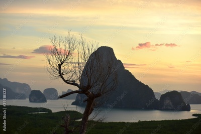 Sea view There are many islands in the early morning, the sky is beautiful golden yellow light.