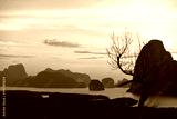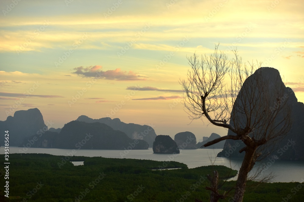 Sea view There are many islands in the early morning, the sky is beautiful golden yellow light.