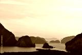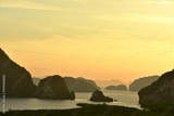 Sea view There are many islands in the early morning, the sky is beautiful golden yellow light.