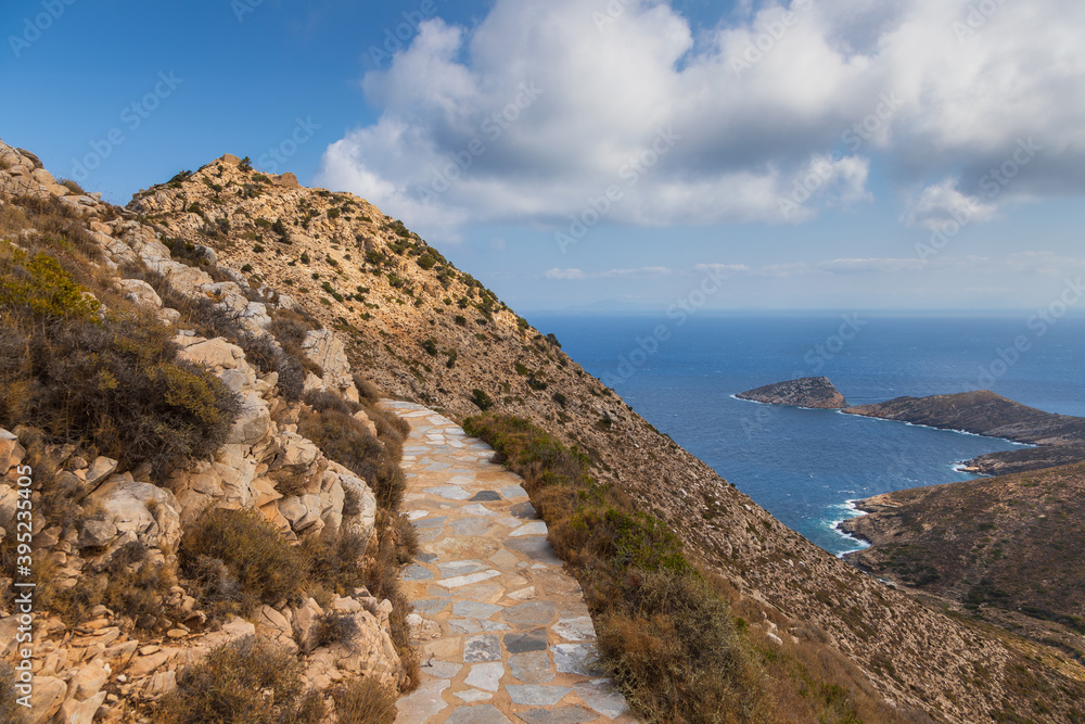 Stone mountain path to Palaiokastro, Ios Island, Greece.