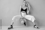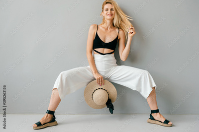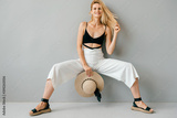 Beautiful young stylish blonde model posing in studio